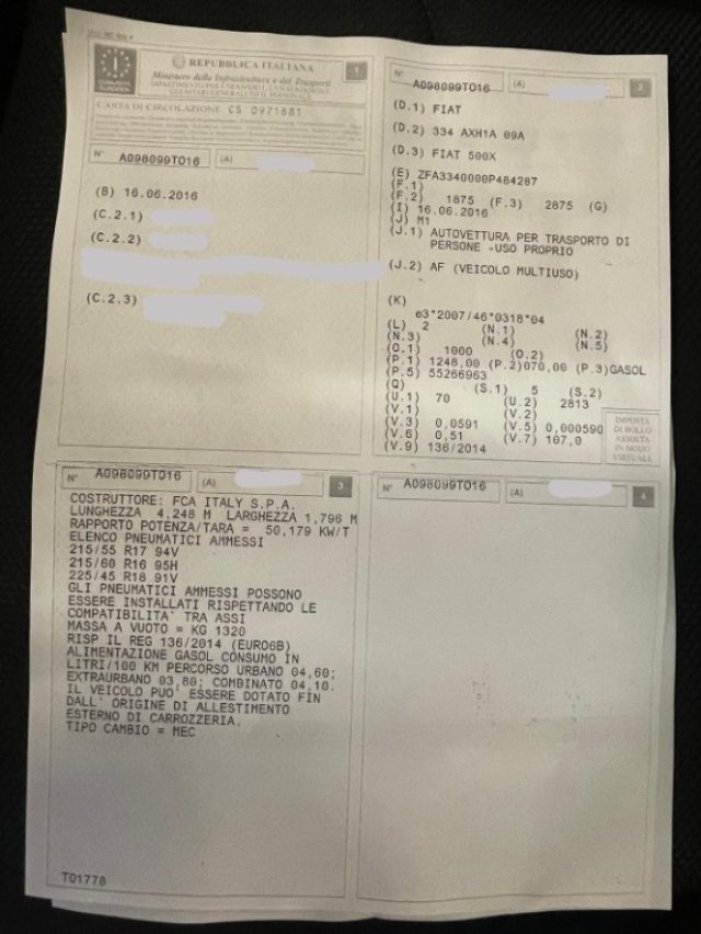 | Immatricolazione | 06/2016 |